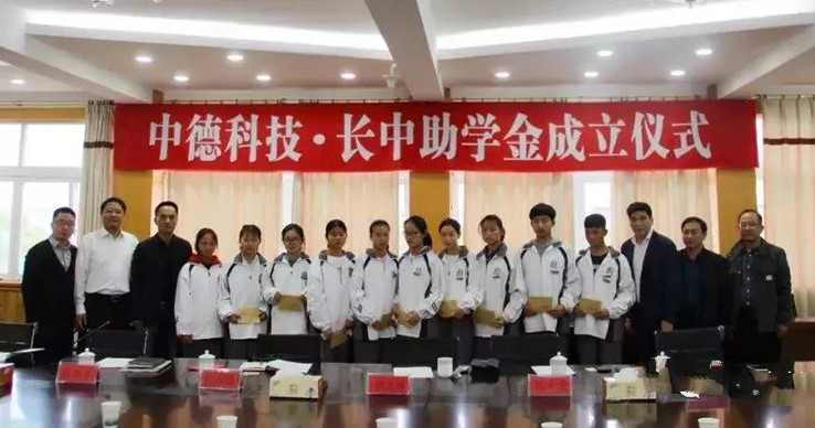 据悉,中德科技•长中助学金将向2018级高一10名受助学生高中就读期间每人每年发放资助陆千元。